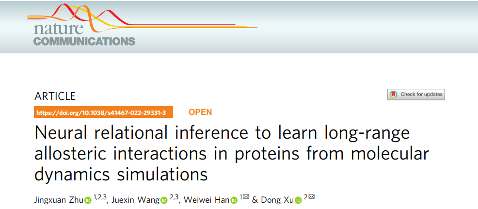 韩葳葳教授、美国密苏里大学电气工程和计算机科学系许东教授科研团队提出一种高效、可操作性强的分子动力学模拟分析方法(NRI-MD),该方法首次将深度学习的图神经网络(GNN)运用于分子动力学模拟分析,基于模拟轨迹的原子速度和位置数据,通过神经关系推理模型(NRI)直接推断出酶分子动力学模拟中残基的相互作用模式,推断出酶的别构调控路径以及氨基酸突变后相对自由能的变化。NRI-MD模型的提出为蛋白质(酶)结构-功能研究领域提供了一种新构架,有望开辟酶分子设计的新模式。研究成果于2022年03月29日在学术期刊《Nature Communications》正式发表(Neural relational inference to learn long-range allosteric interactions in proteins from molecular dynamics simulations)。论文第一完成单位为博彩App