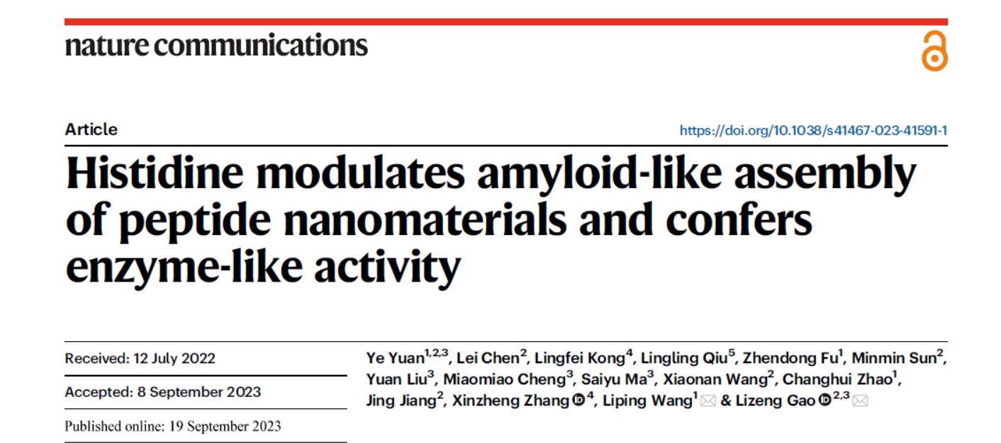 生物物理研究所的高利增教授研究团队以Fmoc-F-F为简约模型,发现组氨酸可以调节Fmoc-F-F的组装行为,诱导酶样催化。相关结果近日发表在Nature Communications上(Histidine modulates amyloid-like assembly of peptide nanomaterials and confers enzyme-like activity. Nature Communications, 2023, 14:5808.)