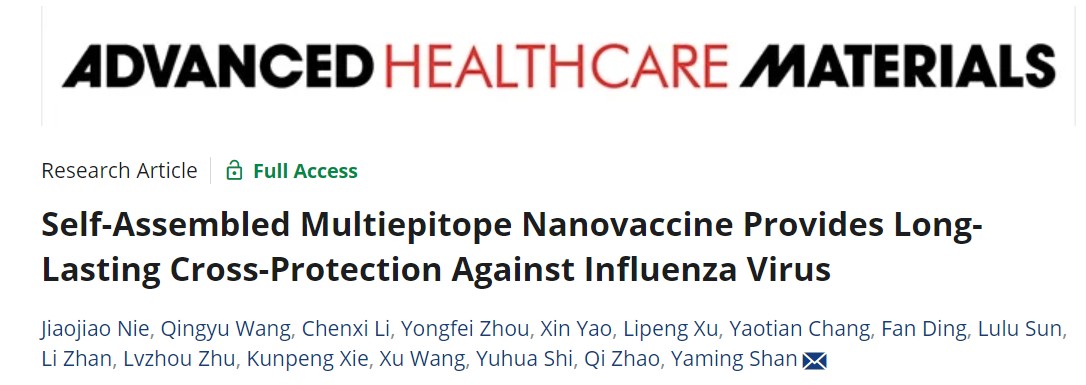 艾滋病疫苗国家工程实验室单亚明教授课题组联合澳门大学赵琦教授课题组,在流感多表位纳米疫苗研究领域取得新进展。相关研究内容以“Self-assembled Multiepitope Nanovaccine Provides Long-lasting Cross-protection against Influenza Virus”为题,于2023年11月20日在学术期刊《Advanced Healthcare Materials》正式发表。