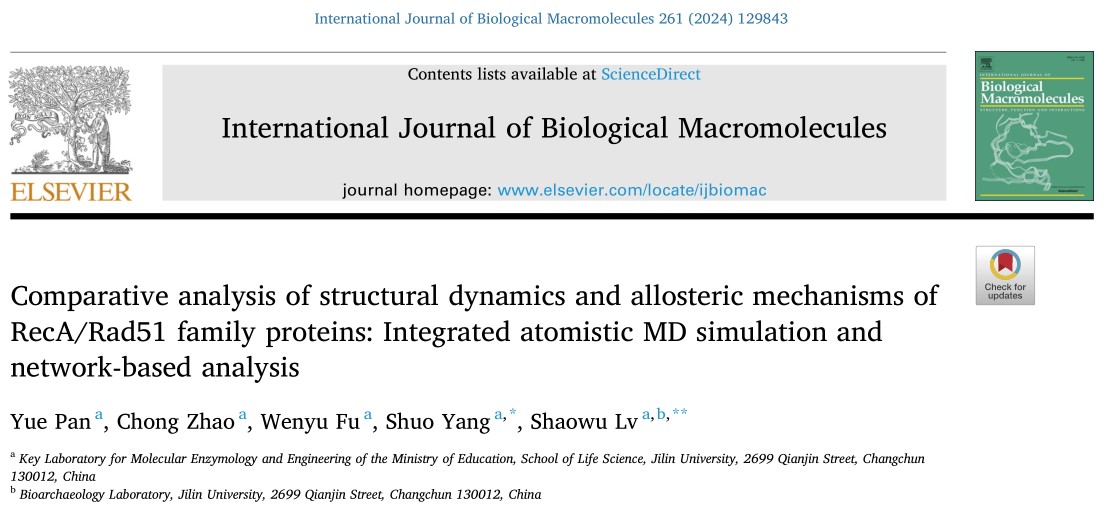 吕绍武教授、杨朔副教授科研团队深入解析了RecA/Rad51重组酶家族的结构动态和功能调控机制,为理解这些关键蛋白在同源重组中的作用提供了新的视角。研究成果于2024年1月30号在学术期刊《International Journal of Biological Macromolecules》正式发表(Comparative analysis of structural dynamics and allosteric mechanisms of RecA/Rad51 family proteins: Integrated atomistic MD simulation and network-based analysis)。论文第一完成单位为博彩App
