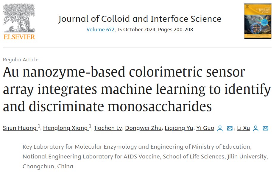 分子酶学工程教育部重点实验室徐力教授、郭轶教授团队报道了基于金纳米酶比色传感器阵列集成机器学习识别和区分单糖的方法。由于不同的单糖表现出不同的氧化还原特性,而金纳米酶可以应用O2、ABTS+•或[Ag(NH3)2]+作为电子受体,以不同的速度催化不同的单糖氧化,并引起不同的显色反应。以此建立的传感器阵列可以产生交叉响应信号,所收集的信号通过线性判别分析(LDA)和层次聚类分析(HCA)来实现不同的单糖或其混合物的区分。此外,可以应用基于传感器阵列的神经网络回归模型同时预测样品中不同单糖浓度。研究论文“Au nanozyme-based colorimetric sensor array integrates machine learning to identify and discriminate monosaccharides”发表在国际学术期刊《Journal of Colloid and Interface Science》上。论文第一完成单位为博彩App
