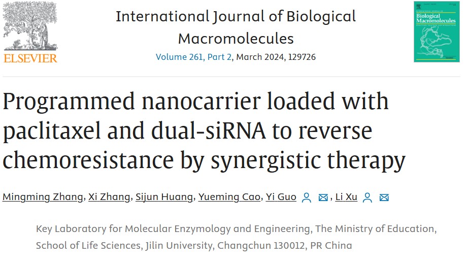 此外,在纳米药物载体方面,为增加PTX的水溶性以及缓解肿瘤耐药性,徐力郭轶教授团队以甲基丙烯酸羟丙酯(HPMA)作为亲水外壳,制备得到一种具有良好安全性和稳定性的阳离子共嵌段聚合物PPEMMRA,实现了多种耐药蛋白siRNA和PTX的共载和分步释放,在体内可以成功地将药物递送到肿瘤组织中。多种siRNA和PTX联用,可以抑制肿瘤细胞迁移,促进活性氧(ROS)释放,诱导肿瘤细胞凋亡,在耐药肿瘤细胞中具有强烈的抗肿瘤效果,进而逆转耐药性发生。研究论文“Programmed nanocarrier loaded with paclitaxel and dual-siRNA to reverse chemoresistance by synergistic therapy”发表在国际学术期刊《International Journal of Biological Macromolecules》上。论文第一完成单位为博彩App