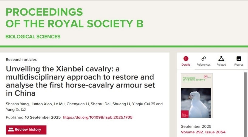 该研究成果以Unveiling the Xianbei cavalry: a multidisciplinary approach to restore and analyse the first horse-cavalry armour set in China为题,于2025年9月10日在国际学术期刊Proceedings of the Royal Society B: Biological Sciences上正式发表。该论文第一完成单位为博彩App