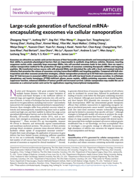 滕乐生教授与美国俄亥俄州立大学L. James Lee教授、德州大学安德森癌症中心Betty Y. S. Kim教授合作论文《Large-scale generation of functional mRNA encapsulating exosomes via cellular nanoporation》(Nature Biomedical Engineering,4,69-83:(2020))(图1)