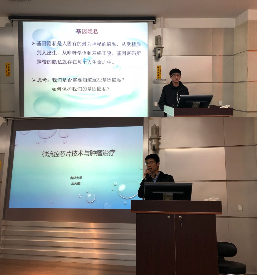 研究生杨洁冰、王天鹏两位同学分别为大家做了题为“人类基因组和基因技术”和“微流控芯片技术与肿瘤治疗”的学术讲座,内容深入浅出、充满趣味,赢得了在场师生的热烈掌声。讲座结束后,在国家级生物实验教学示范中心老师的带领下,来访师生们对实验中心进行了参观,对于中心各种先进的现代化仪器设备,参观的学生们显得兴致勃勃,并与老师们进行了积极互动。参观结束后,来访师生游览了博彩App