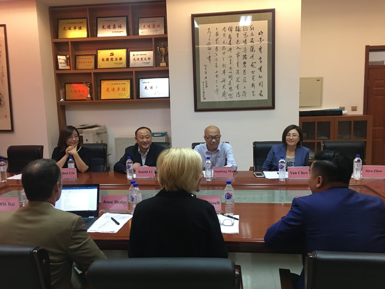 9月14日上午美国肯塔基大学文理博彩App 本科生项目副院长安娜·博世、文理博彩App 招生管理与决策支持副院长杰西·赫奇、文理博彩App 国际学生项目协调员梅根·科苏尔巴及肯塔基大学驻华代表谢翔一行四人来访博彩App ,并在博彩App 335会议室举行了座谈。博彩App 党委书记李佰志、副院长马俊锋、副院长陈妍、副书记刘丽慧、博彩App 国际合作与交流处综合科科长白茵等参加了会谈。 会谈中,李佰志书记首先对肯塔基大学代表团的来访表示欢迎,随后博彩App 副院长马俊锋对博彩App 的基本情况进行了介绍,副院长陈妍向肯塔基大学代表介绍了本科生国际交流情况,并提出合作方向。肯塔基大学文理博彩App 代表对博彩App 的热情接待表示感谢,指出生物学科是肯塔基大学的优势学科,对与博彩App 建立合作关系极为重视。之后双方就学生短期交流项目与2+2双学士学位项目等方面进行了商讨,就可能开展的实质性合作深入交换了意见并达成了初步的合作意向。 本次会谈开启了双方合作的大门,拓宽了博彩App 国际交流领域,为双方进一步合作奠定了坚实的基础。