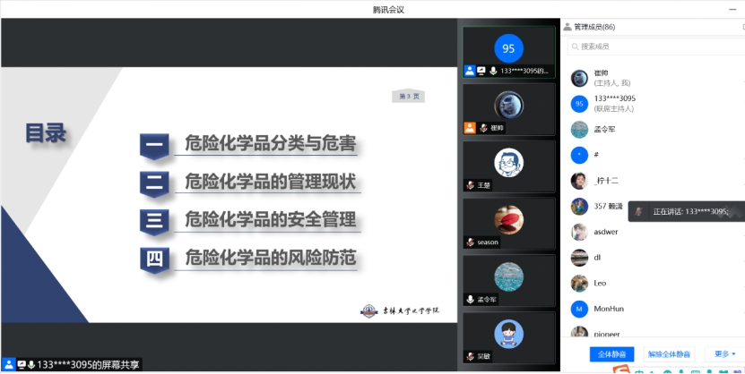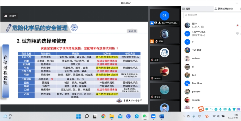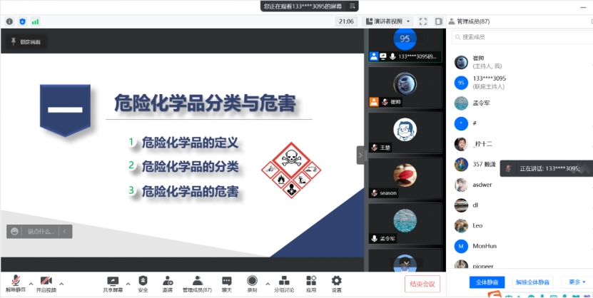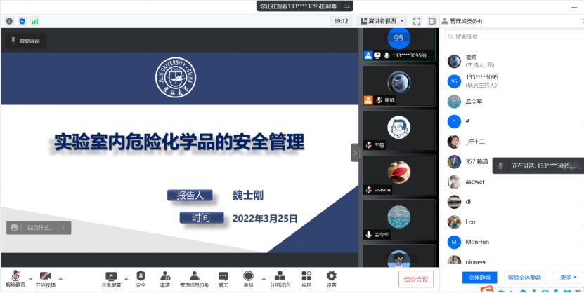 化学国家级实验教学示范中心副主任魏士刚研究员开展实验室危化品管理安全主题讲座。本次讲座共有100余名师生参加,讲座由崔帅副院长主持。