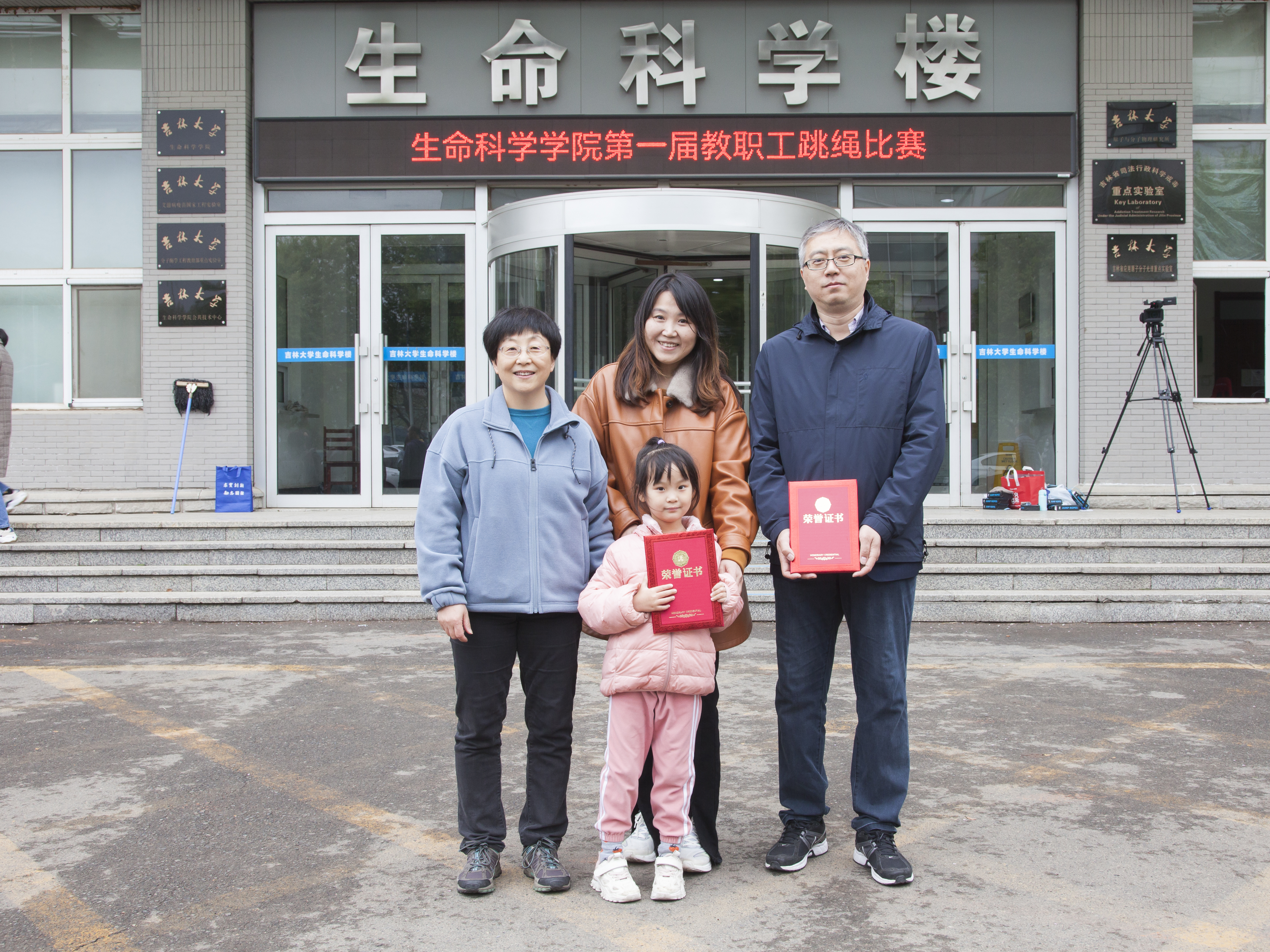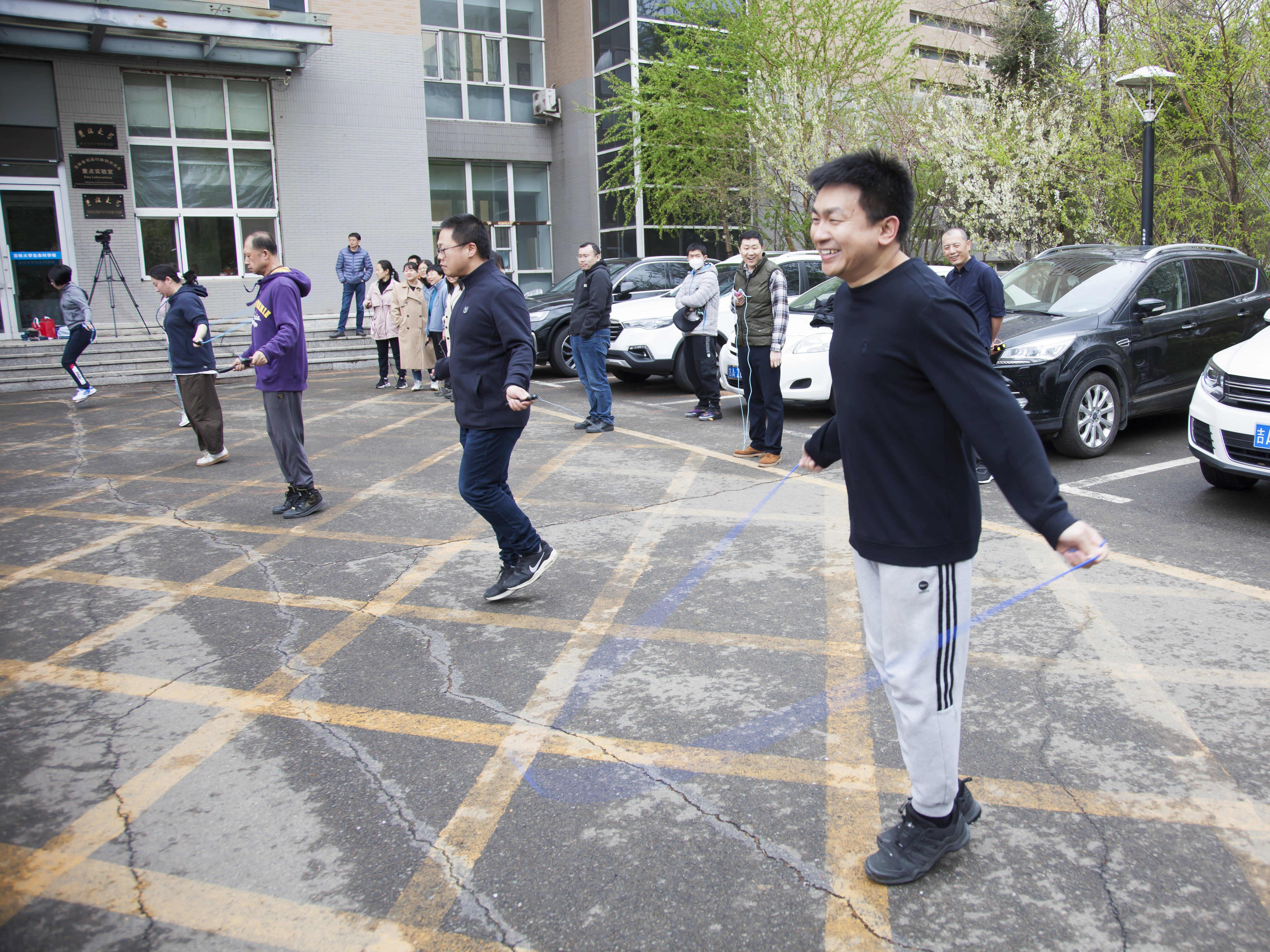 于4月28日中午在生命科学楼前举办“爱Life”系列活动(十一)——首届教职工跳绳比赛。