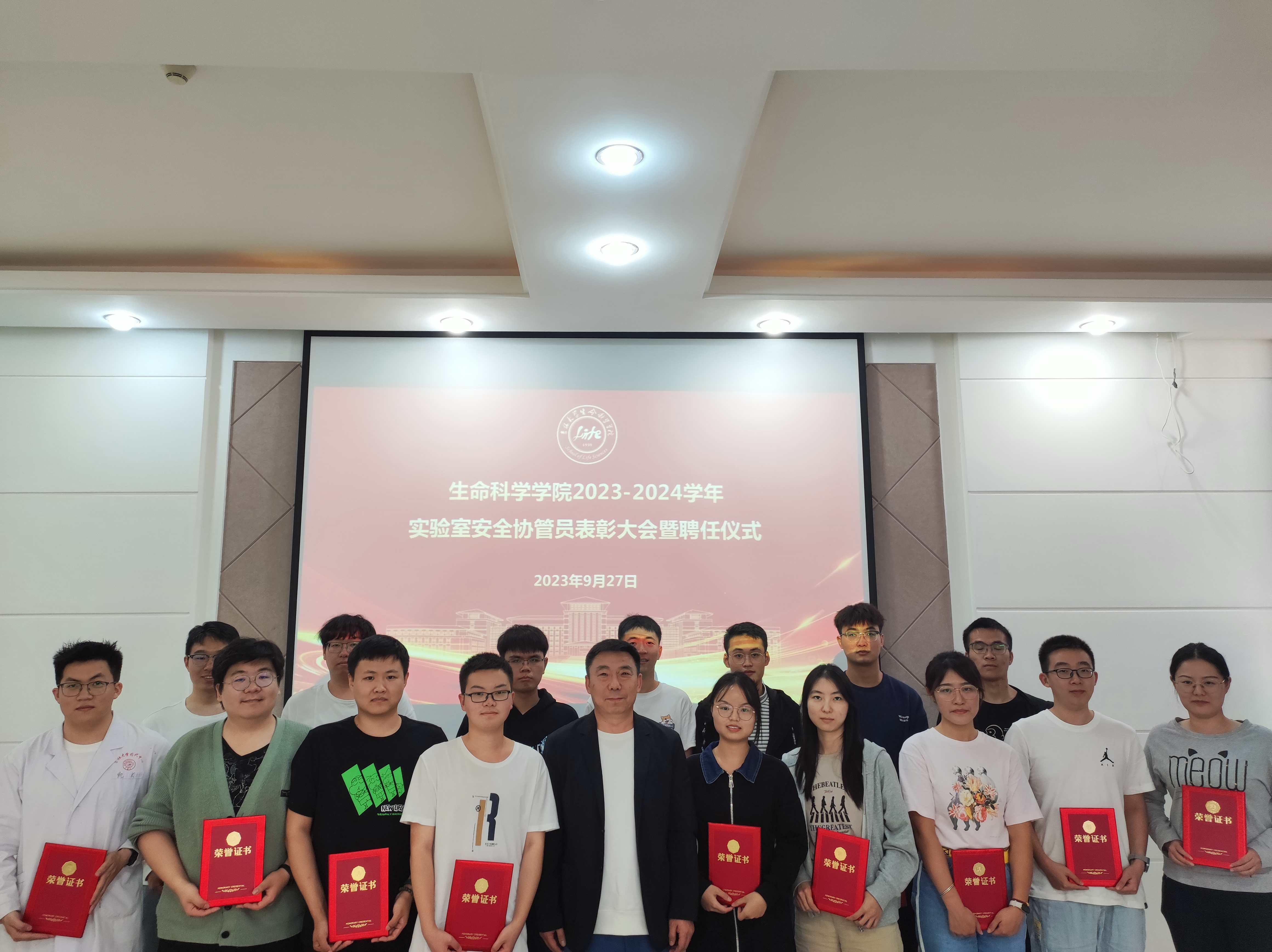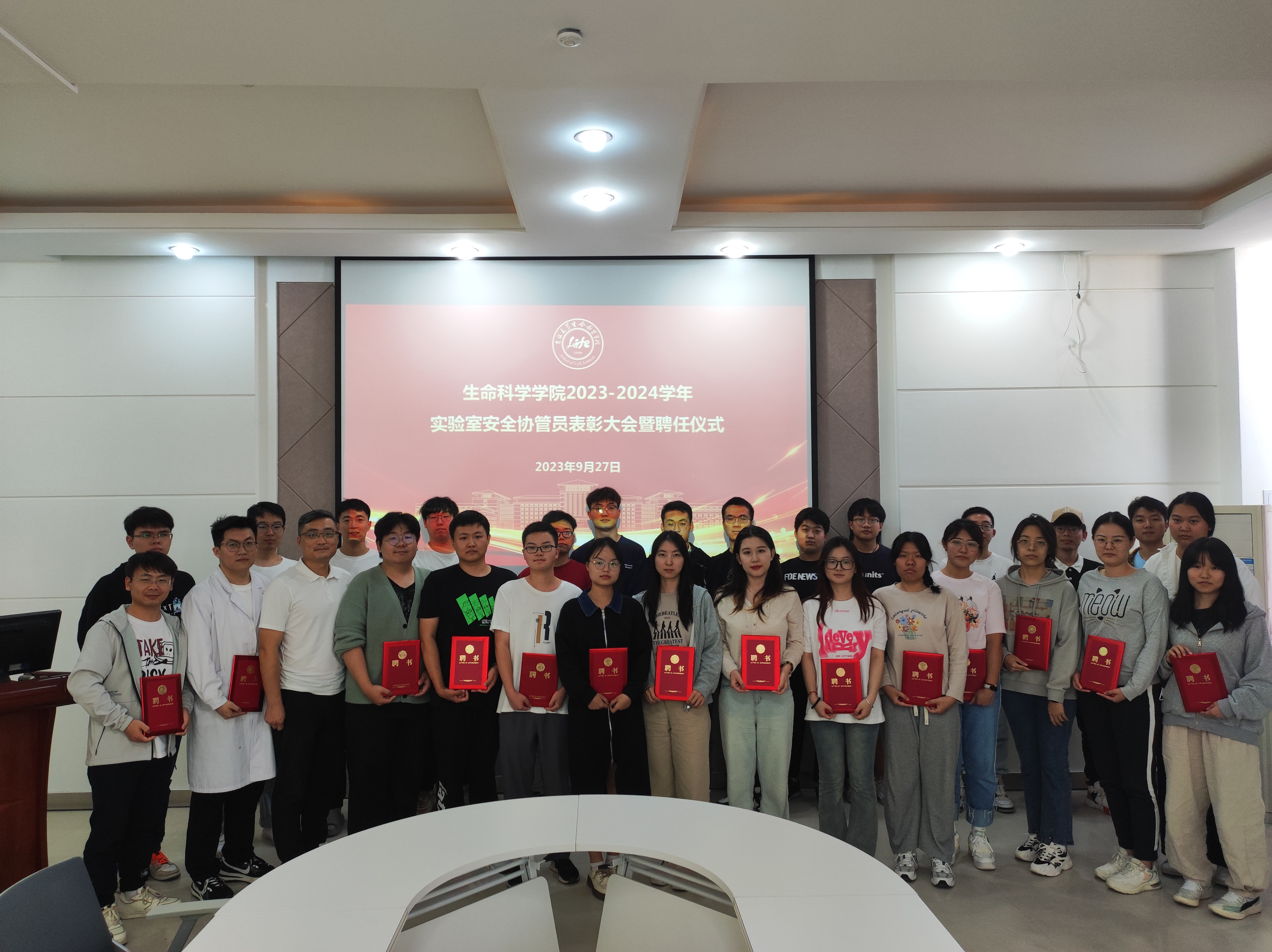 于生命科学楼408室举行2023-2034学年实验室安全协管员表彰大会暨聘任仪式。党委副书记林相友、博彩App