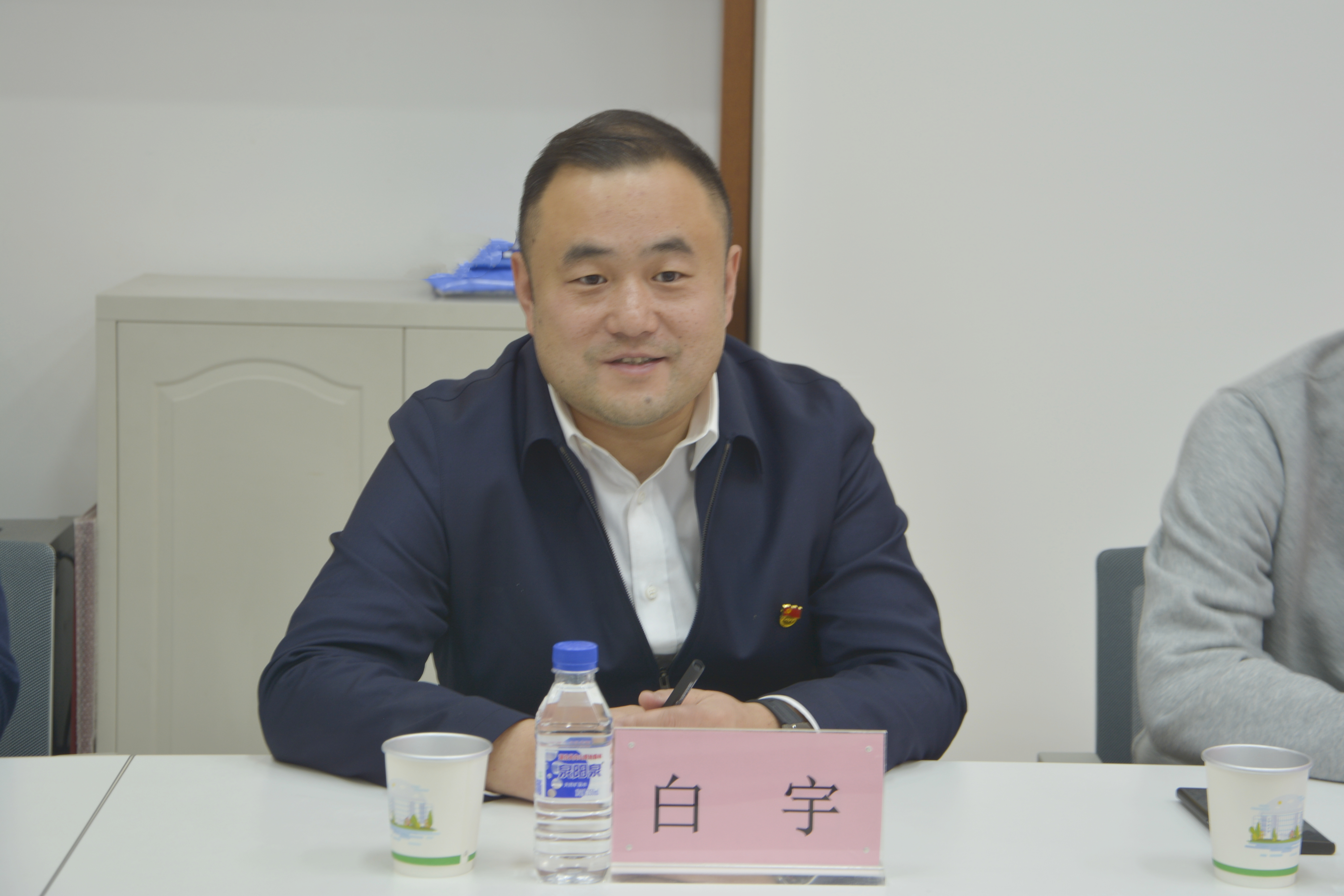 领导班子成员及教师代表参加调研座谈会,座谈会由党委书记白宇主持。