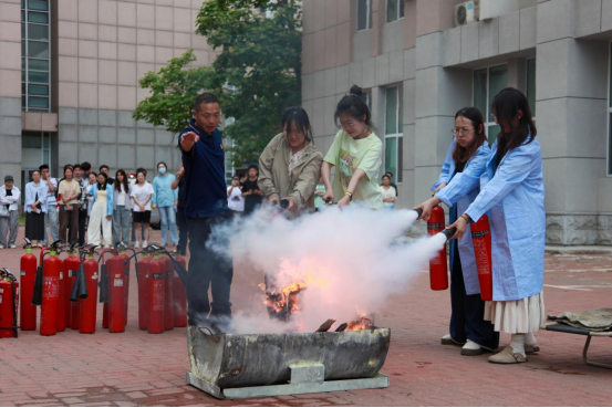 14时整,“火警信号”发出,各楼层迅速组织师生进行疏散,并按照预案进行火灾报警、人员疏散自救、抢救伤员、扑救初级火灾,全体师生在应急疏散中积极配合,听从指挥;各岗位人员各司其职、各尽其责、分工明确、有序地完成了疏散活动。在灭火演练过程中,保卫处消防科科长董立明详细介绍了消防自救面罩、各种类型灭火器、灭火毯和消防栓的使用方法及注意事项,参与师生均能够遵守操作规程正确实施演练活动。