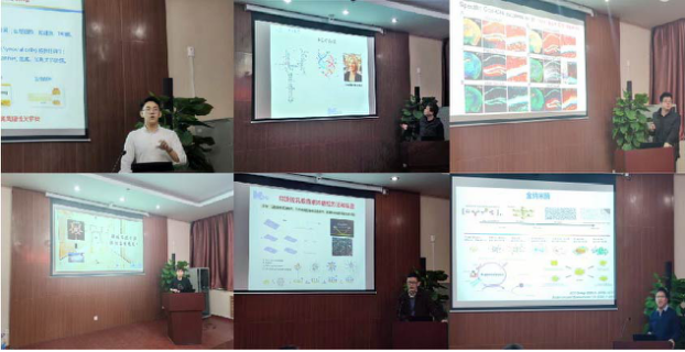 鼎新博士后韩浩博博士首先作了题为“基于miR-23b构建类风湿性关节炎基因治疗体系研究”的主题报告。他提出,研究构建纳米基因药物通过诱导巨噬细胞凋亡以及抑制炎症反应的协同效应实现类风湿性关节炎的治疗,为类风湿性关节炎及其他自身免疫疾病的精准基因治疗提供了新的策略。姜大志副教授作题为“DNA催化功能研究”的主题报告。报告介绍了具有催化功能DNA的辅因子、催化机制以及在生物小分子检测方面应用研究,为阐述DNA催化机制及细胞内检测成像奠定基础。孙栋副教授作题为“Dorsal DG outer-layer neurons regulate anxiety-like behaviors”的主题报告,阐明焦虑障碍的发病机制对相应的临床诊断和干预具有重要的指导意义。徐阳博士作题为“基于质谱的古蛋白分析方法在考古领域中的应用”的主题报告,从考古遗址中动物骨骼的种属鉴定、古代人群生业模式的探索以及考古材料中未知成分的鉴定三个方面阐述基于质谱的古蛋白分析方法在考古领域的应用。杨方副教授作题为“基于微流控系统的新型生物检测和分析技术研究”的主题报告,提出对全血样本中疾病生物标志物的集成式的早期检测,对癌症等疾病的早发现、早治疗具有重要的科学意义和应用价值。黄宜宾副教授作题为“纳米酶”的主题报告,讲解了如何设计构建活性多肽功能化的金纳米酶以及利用其优异的荧光性质和酶活性,并探究了金纳米酶在细胞成像,农残检测及疾病诊疗方面的优异应用前景。