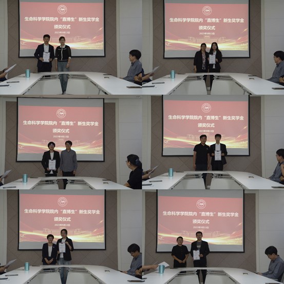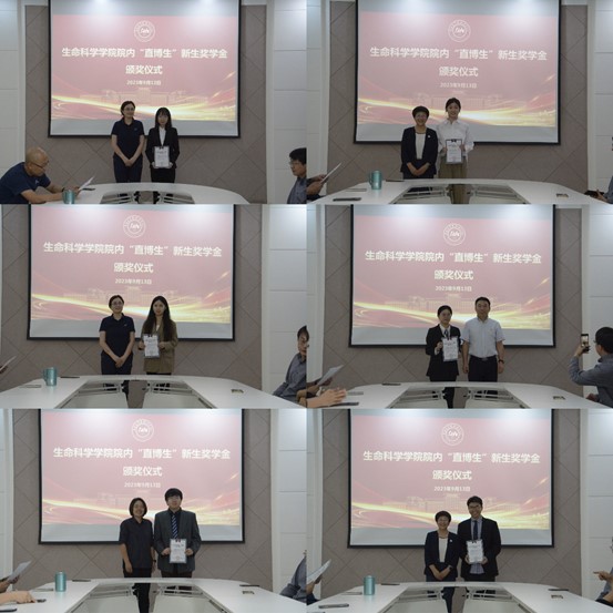 于生命科学楼408室举行第一届院内“直博生”新生奖学金颁奖仪式。院长于湘晖、党委副书记林相友、副院长崔银秋、副院长陈妍,研究生导师代表徐力、李桂英、高仁钧、于彬,研究生工作办公室工作人员和获奖新生参加颁奖仪式。颁奖仪式由副院长马俊锋主持。