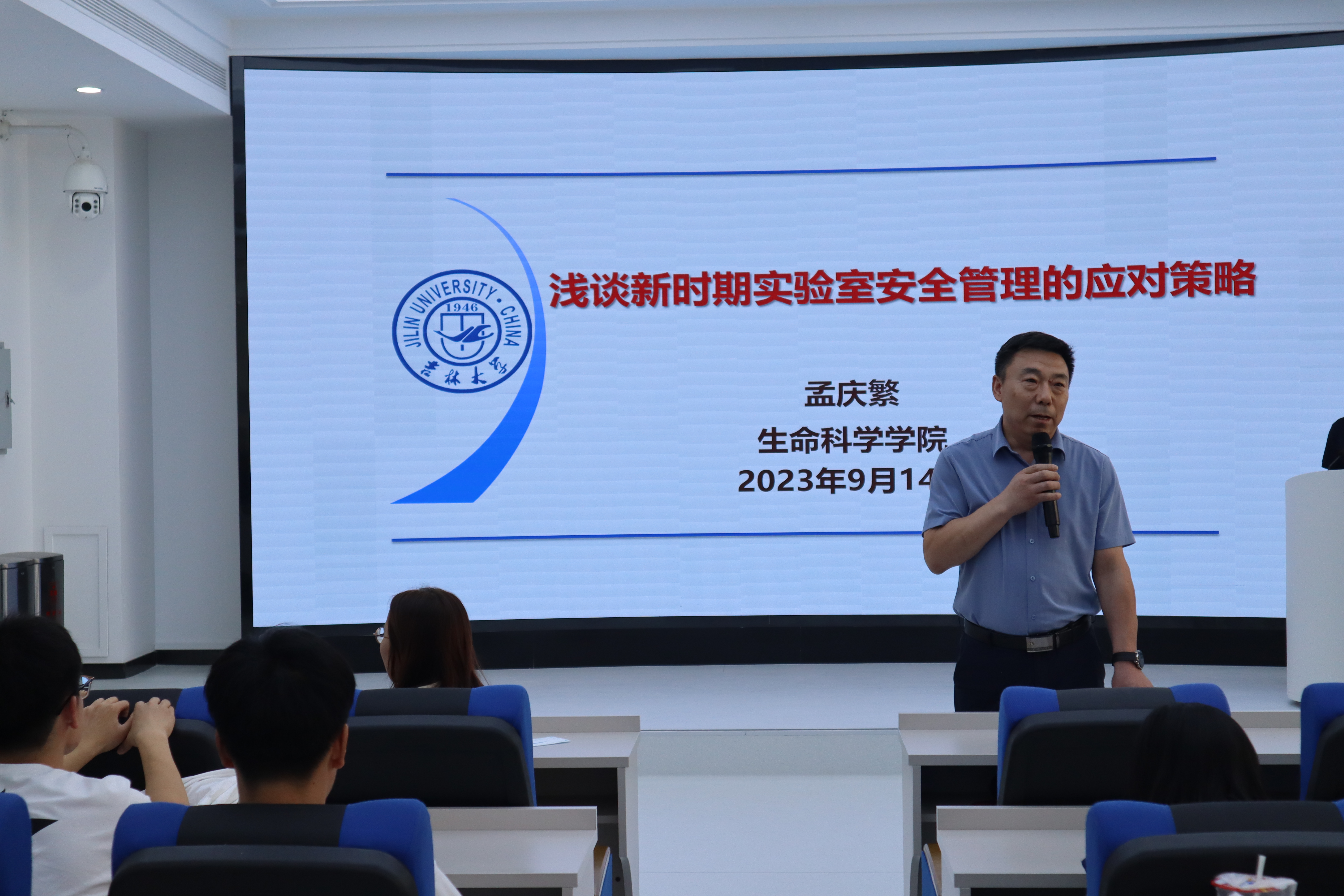 生物基础实验教学中心副主任孟庆繁老师为2023级研究生开展实验室安全教育主题讲座,博彩App