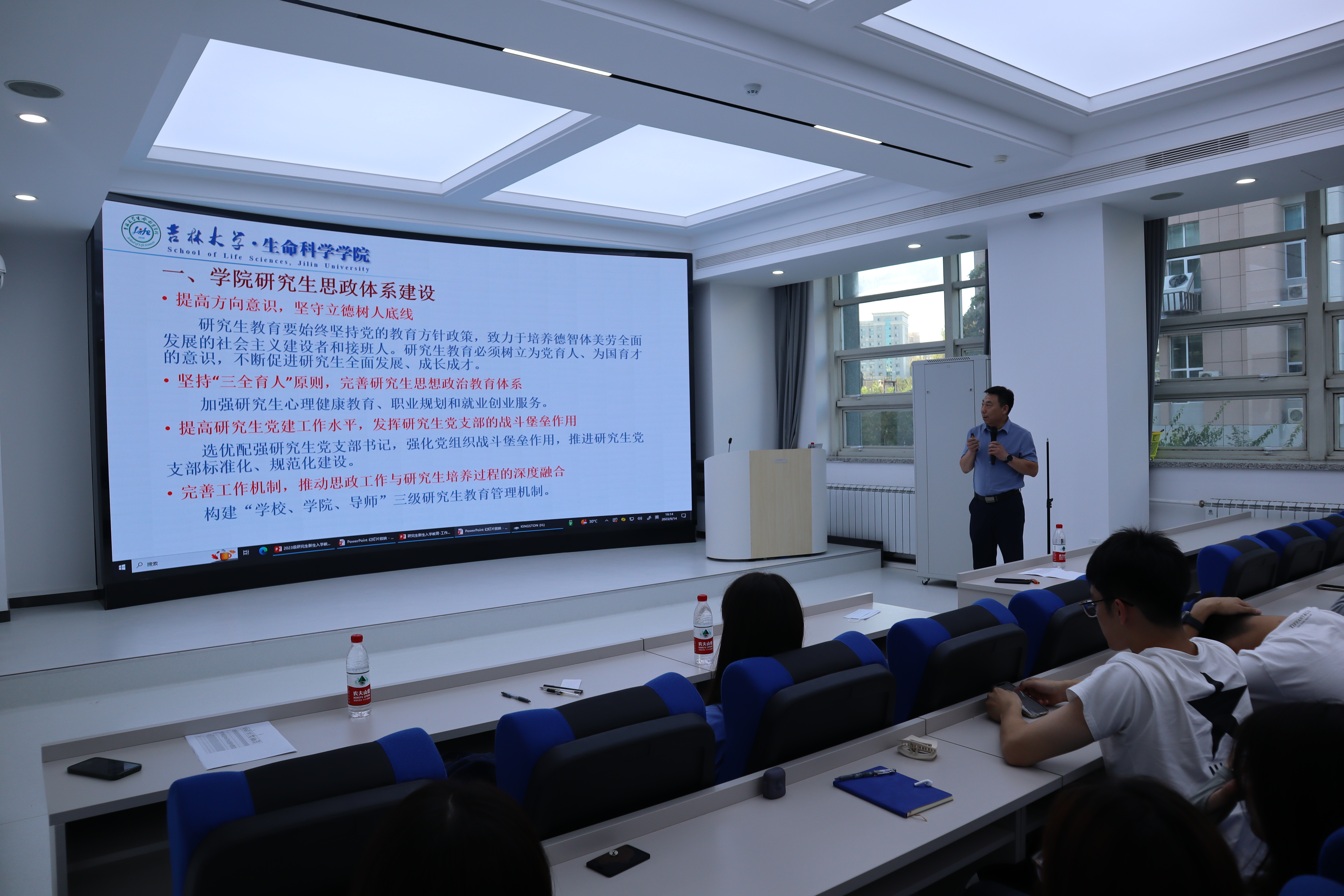研究生教育概况、建立良好导学关系以及如何做好科研工作四个方面展开介绍,并结合具体数据让同学们对研究生培养制度和管理制度有了更加直观的了解。同时,他还对培养方案、课程考核方式、毕业答辩流程以及奖助学金评定等方面进行了全面细致的讲解。