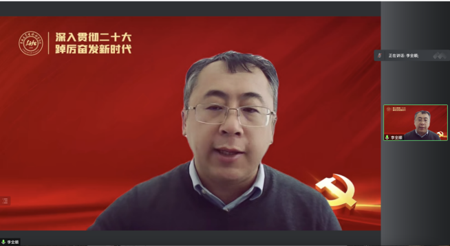 的党委委员、纪委委员、党支部书记、本科生辅导员、研究生秘书进行了深入讲解。他首先全面阐释了党的二十大报告的三个重大现实意义和深远历史意义,并着重分享了对新时代十年的伟大变革的认识和体会。“新时代十年的伟大变革,是全方位、根本性、格局性的,体现在改革发展稳定、内政外交国防、治党治国治军各个方面”,他强调,要深刻明确这些伟大变革是以习近平同志为核心的党中央坚强领导的结果,是全党全军全国各族人民团结奋斗、顽强拼搏的结果,广大同志要自觉将个人思想统一到党中央的决策部署,将个人奋斗融入中华民族的历史伟业;随后,围绕党的建设,他指出,要深刻领会从严治党的重要意义、重要方略、重要路径,在把握“4个突出”中学深悟透、学思践行、学以致用;最后,围绕党的二十大对教育科技人才工作的部署,他强调,广大同志要深入学习领会党的二十大精神的核心要义,准确把握党中央对科技创新和教育强国、科技强国、人才强国战略的新部署新要求,紧随国家发展急迫需要和长远需求,深刻把握生物学科的责任使命、发展机遇和前进方向,坚决将“四个重要任务”落实好、完成好。