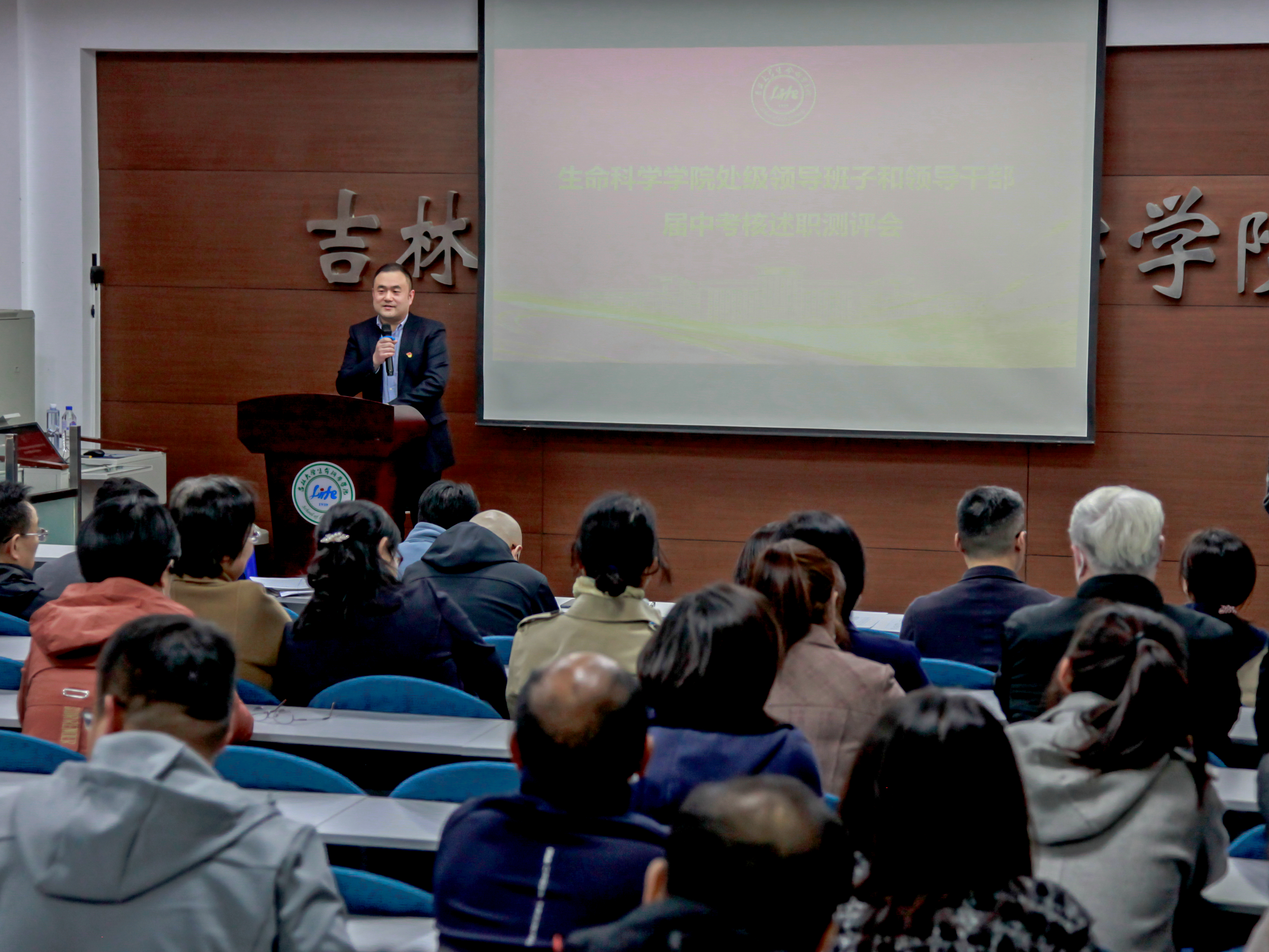 于生命科学楼107报告厅召开处级领导班子和领导干部届中考核述职测评会。会议由党委书记白宇主持。