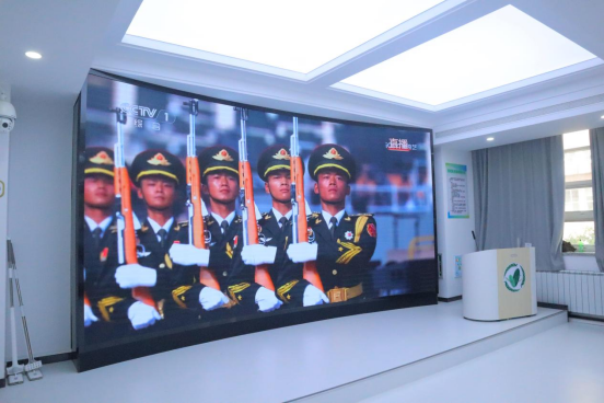 师生整齐地坐在会场中,全场肃穆,目光共同聚焦于屏幕之上。雄师列阵,气势如虹,上万名受阅官兵、数百台(套)地面装备、百余架战机,编成45个方(梯)队庄严接受祖国和人民检阅。在阅兵过程中,大家被一个个整齐划一的受阅方队所震撼,被一辆辆先进的武器装备所吸引。典礼尾声,8万羽和平鸽展翅高飞,8万只气球腾空而起,纪念大会在《歌唱祖国》的激昂乐曲中圆满结束。
