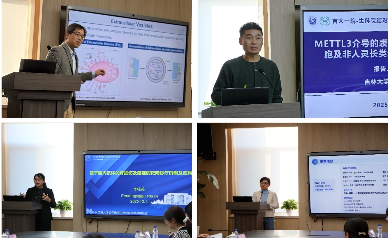 座谈会上,杨照罡教授以《新型纳米给药系统及肿瘤免疫治疗的基础与临床应用展望》为题,分享了以外泌体药物递送系统和微针技术为代表的最新前沿成果。武泽明教授聚焦《衰老与癌症等年龄相关疾病的表观机制及靶向干预进展》,系统阐述了在衰老研究模型构建与机制探索方面的突破。李桂英教授在题为《基于胞内抗体的肝损伤及癌症的靶向诊疗机制及应用》的报告中,深入阐释了肝损伤调控新机制与靶向治疗新策略。李悦教授则围绕《肽基水凝胶自组装与生物分子包埋》,解析了该创新材料在生物医学递送与组织修复领域的广 阔前景。