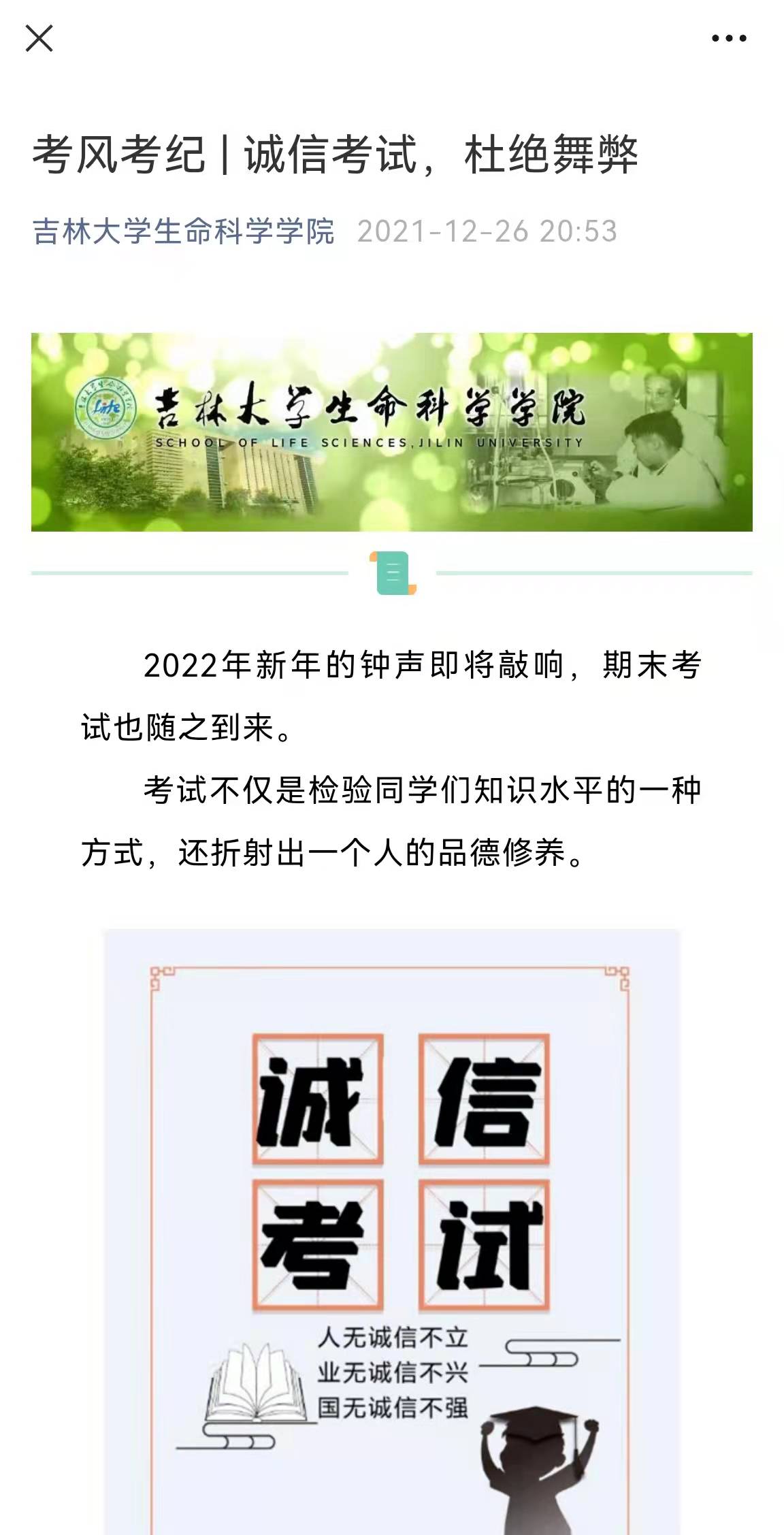 公众号上发布了《考风考纪|诚信考试,杜绝舞弊》的推送,倡导优良学风与诚实诚信,并分年级召开了诚信考试教育动员会,要求全体学生严格遵守考试纪律,做到诚信应试,同时组织全体学生签订了《博彩App