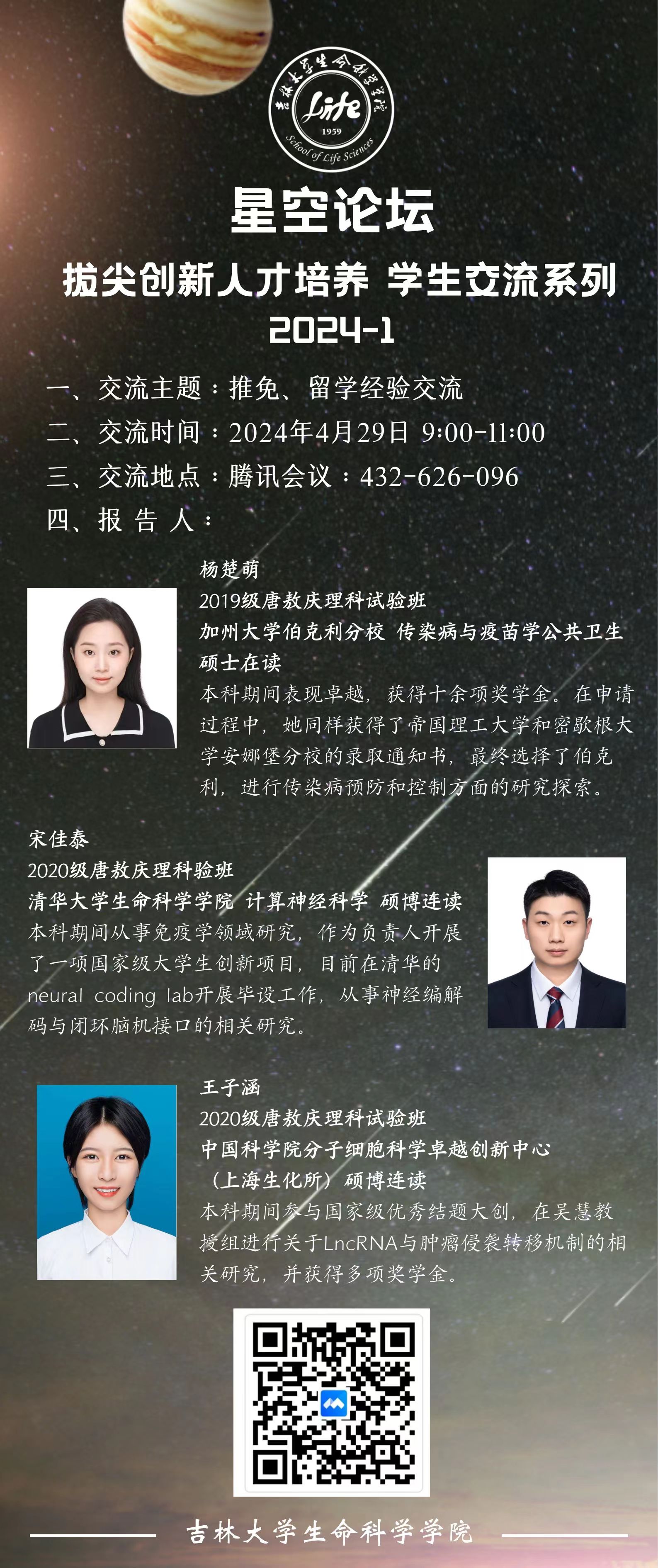 举办星空论坛·学生交流系列,开展推免、留学经验交流主题分享。