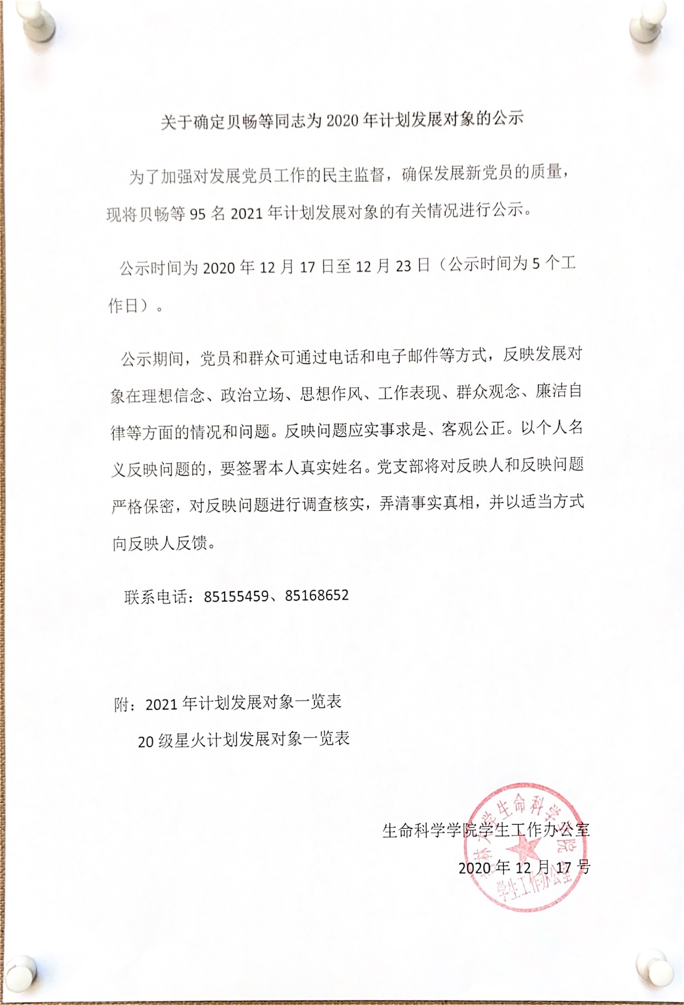 关于确定贝畅等同志为2021年计划发展对象的公示