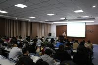王明荣教授首先简单介绍了自己的研究方向——“癌变机理与靶向治疗的基础研究”,随后对此领域的研究思路及相关研究方向展开详细的解说。王教授用轻松幽默的语言将原本枯燥乏味的学术简介扩展成了一堂生动有趣的研讨课,将科研进展与应用实例相结合,极大地激发了学生们的对于癌变机理与相关治疗的基础研究的兴趣。王教授还亲切的教育大家学术上不能造假,要讲诚信,基础学科的发展就在于脚踏实地地作研究;知之为知之,不知为不知,方能在未来的道路上取得长足发展,令与会全体成员深受启发。