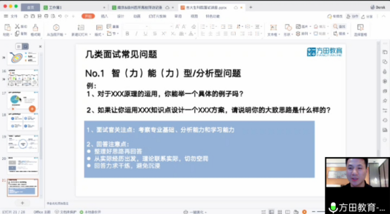 联合方田教育于2021年5月12日19点整,由方田教育人力总监在腾讯会议在线为大家进行就业面试技巧培训,博彩App