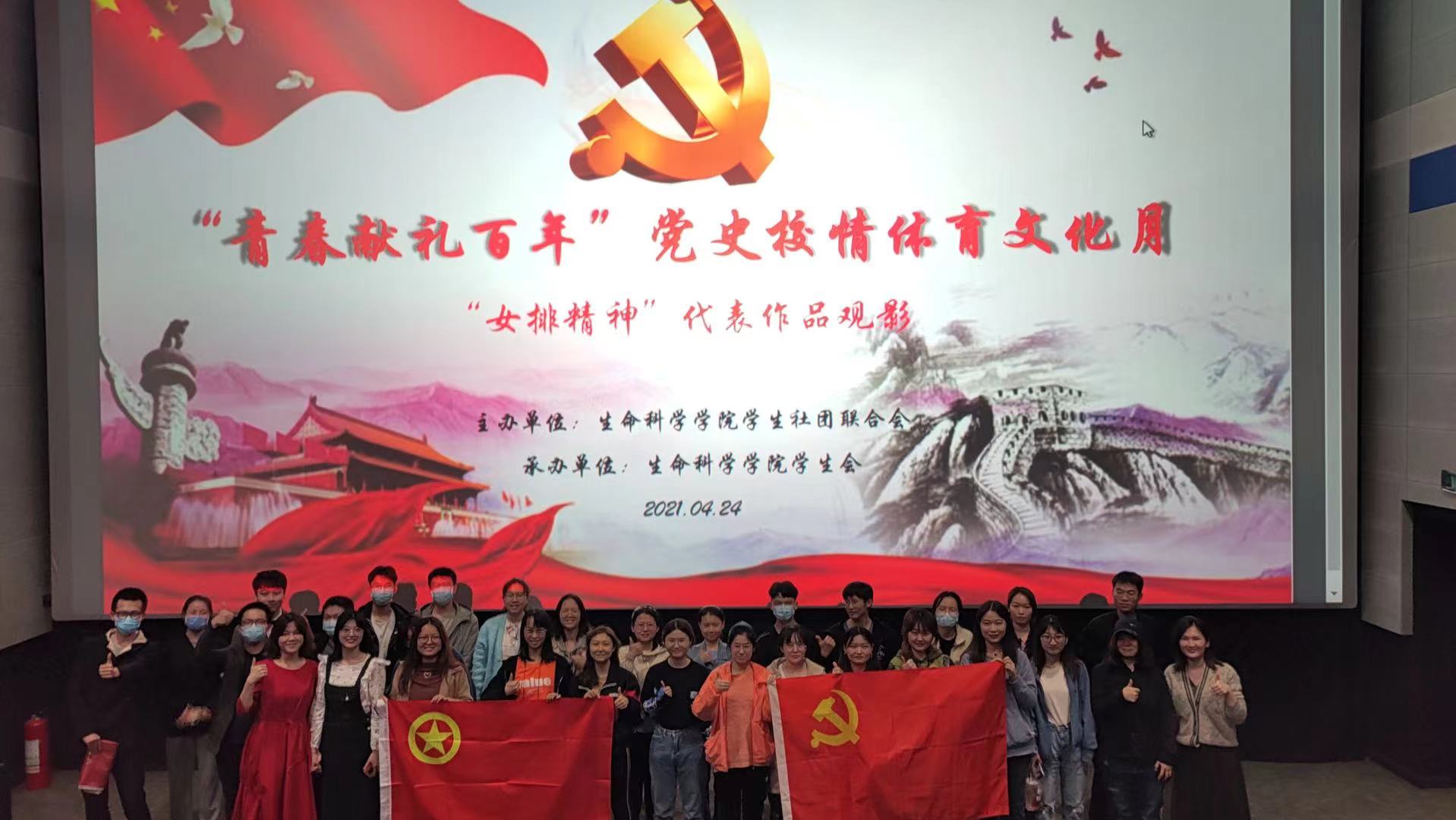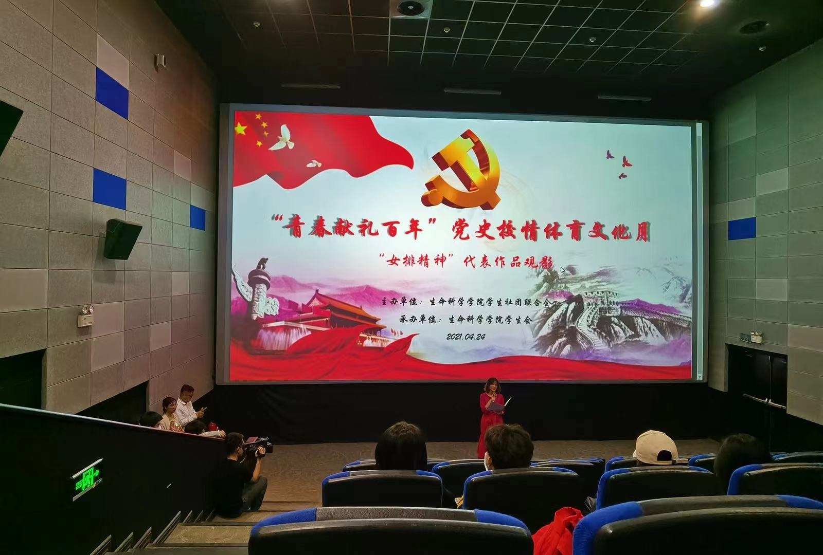 于4月24日晚,在吉大巨幕影城举办了“青春献礼百年”党史校情体育文化月 ——“女排精神”代表作观影活动。