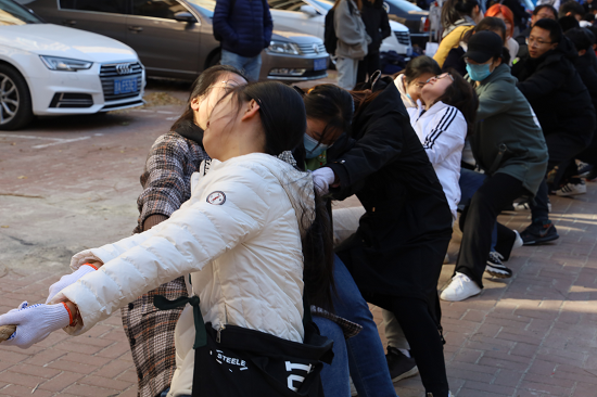 比赛现场,凛冽的秋风盖不过大家的口号与欢乐,正午的阳光赛不过浓浓的热情,各参赛队摩拳擦掌,跃跃欲试。随着裁判的一声哨响,参赛队员瞬间爆发出全身的力气,心往一处想,劲往一处使, 决定胜负的红丝带左右摇摆,两边的队员齐齐后仰,蓬勃的活力在号子中激扬,场边的拉拉队大声呐喊助威,恨不得亲自上场。