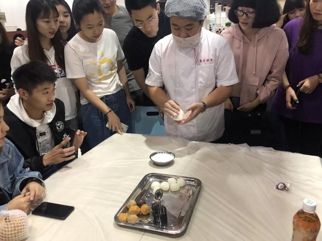 同做中秋月饼,共赏生科情谊。9月13日下午13:30,莘子园餐厅一楼,在学生社团联合会主席尚蔚的主持下,做月饼活动拉开了帷幕。参与做月饼的同学们在学生社团联合会的安排下,依次跟食堂师傅学习了做冰皮月饼。