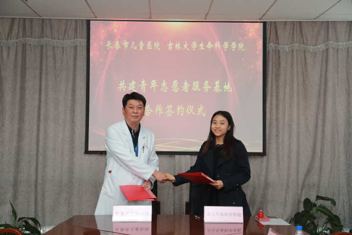 共建青年志愿者服务基地协议书”。吉林省儿童医疗中心、长春市儿童医院院长兼党委书记姜洪波、护理部主任张朋、门诊办主任魏志刚、社工部主任谭璐作为儿童医院代表,博彩App