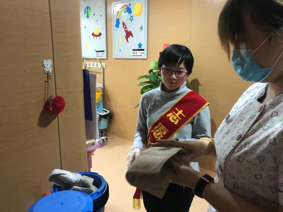 志愿者前往长春市儿童医院做儿童患者陪护和医导等工作,以缓解因为医护人员不足给医院医疗医护工作带来的不便。