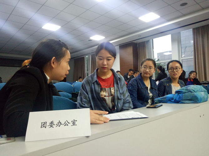团学联副部换届面试大会。来自2017级70名副部候选人参加面试。