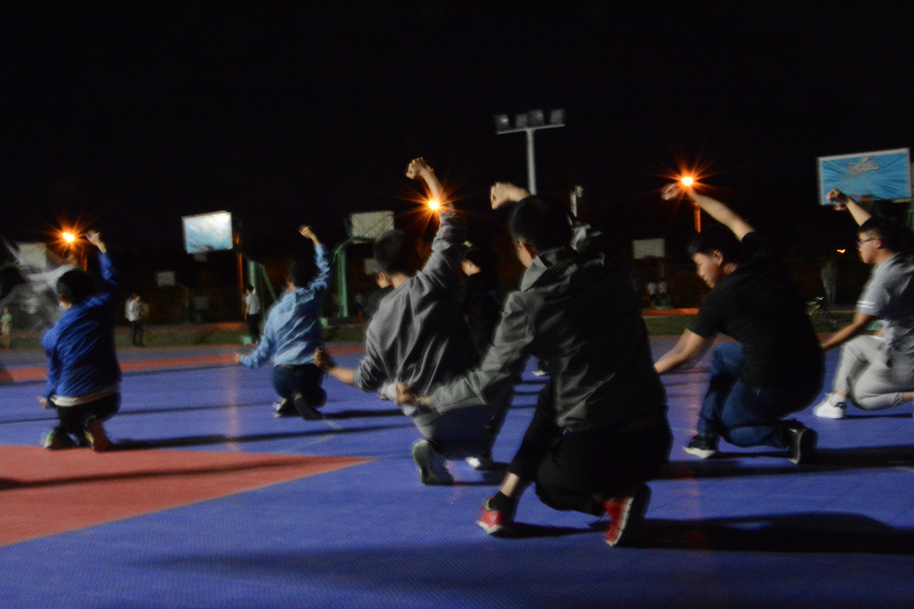 备战过程中,小伙子们每晚9:30在篮球场训练一个小时。连续20天,几乎天天满勤,从对长拳的陌生到动作整齐、有板有眼,他们付出了持之以恒的不懈努力。比赛开始时,小伙子们仍然抓紧时间跟着比赛场地的音乐在场地外一遍遍的完善动作。汇演时,小伙子们听从前台指挥,进场、退场、候场井然有序,尽展生科风采。同学们每晚一起练习,培养出了默契,原来陌生的面孔现在也是无比亲切。小伙子们意气勃发,首次在全校展现出博彩App