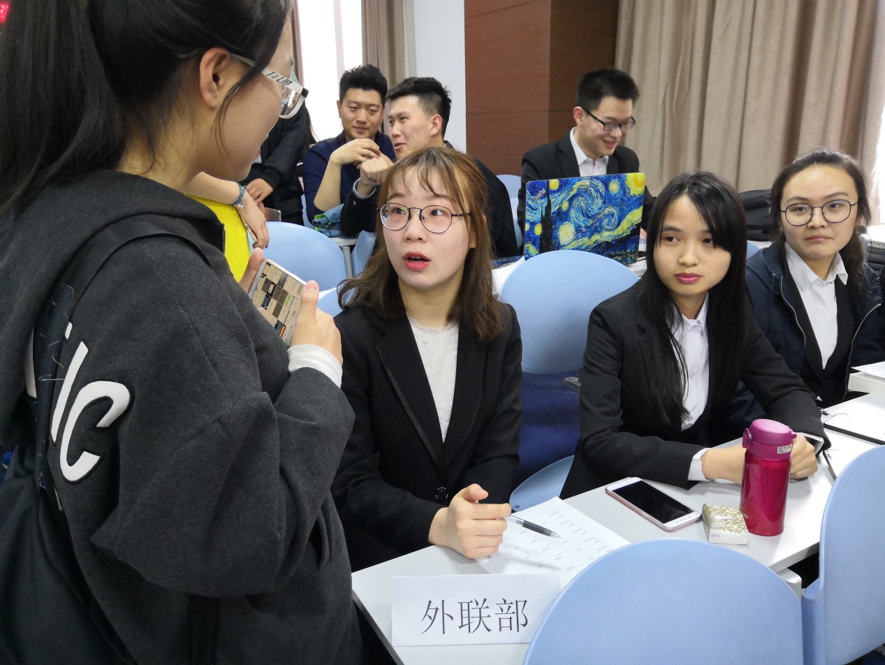 会前,各个部门成员提前布置好纳新的场所,并对于面试问题和流程进行讨论和交流以确保纳新活动有序进行。