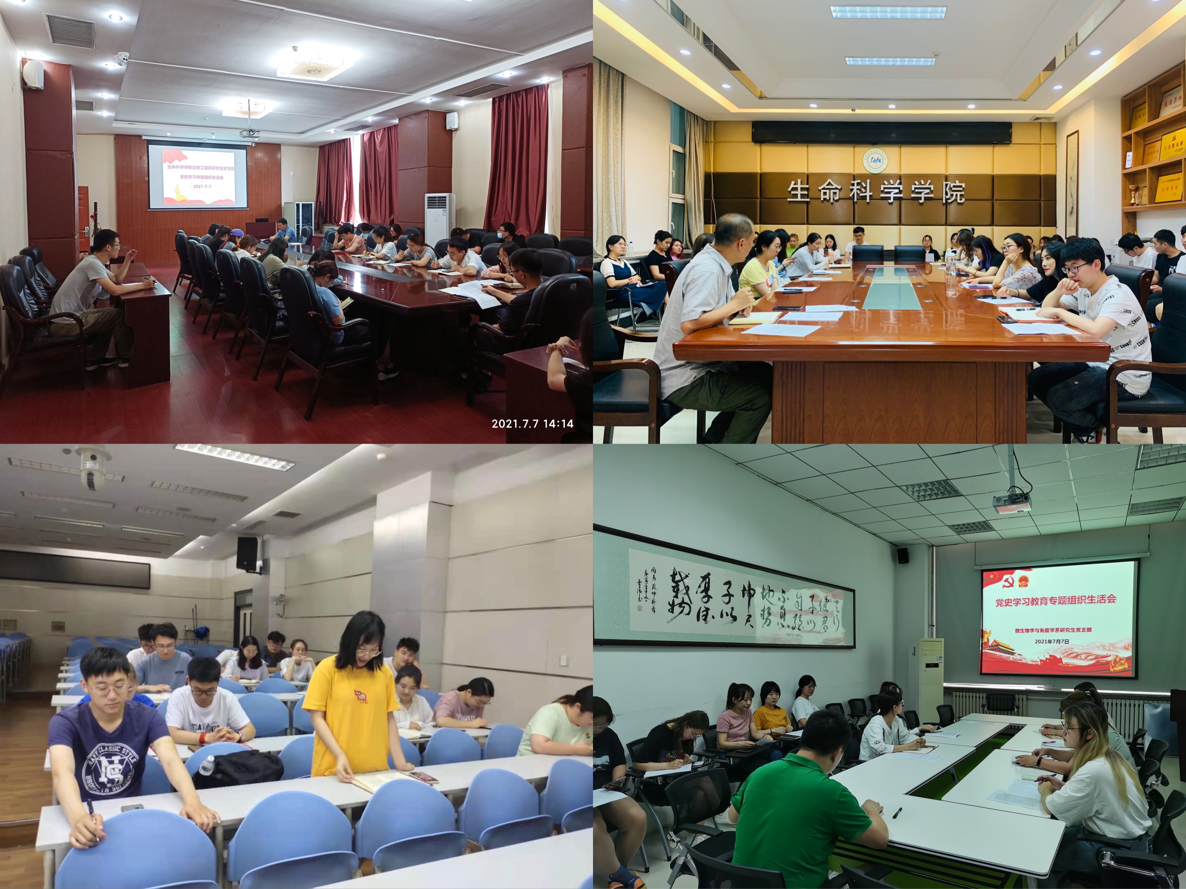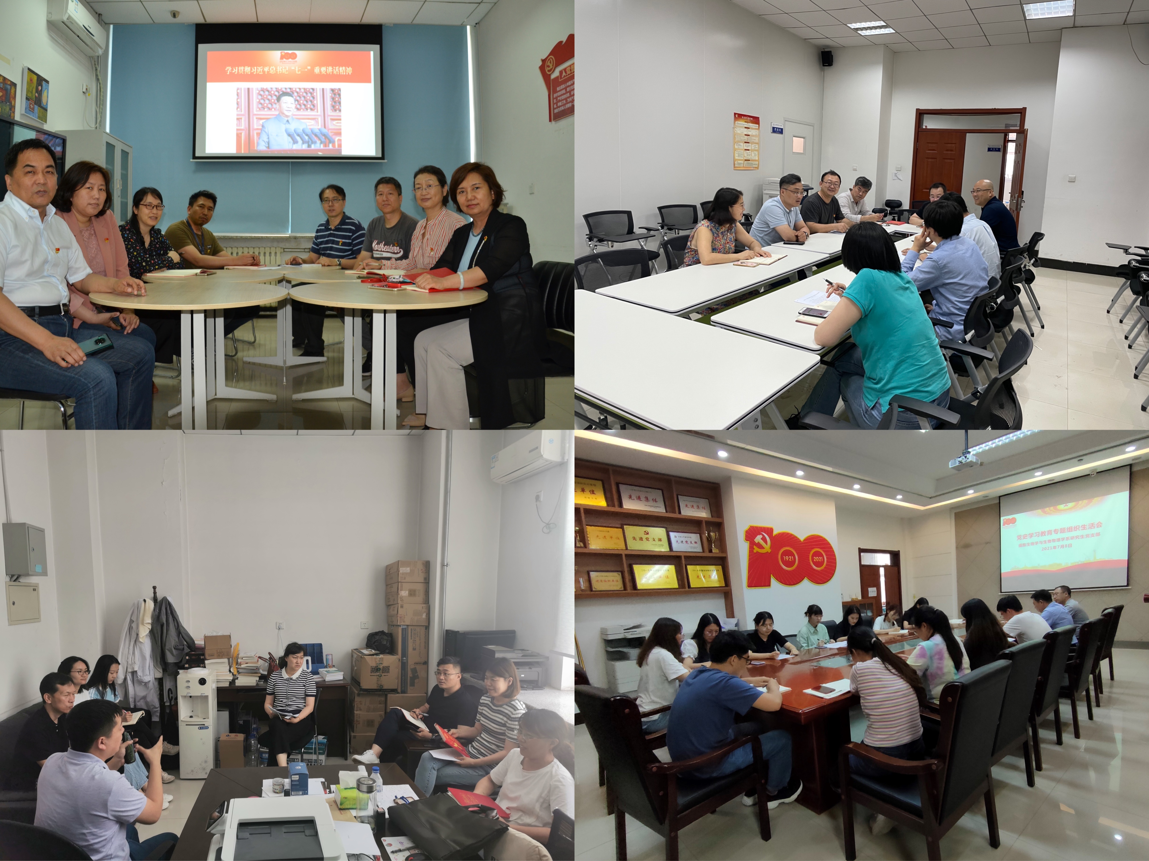 11个教工党支部、研究生党支部于7月5-8日组织召开党史学习教育专题组织生活会,围绕“学党史、悟思想、办实事、开新局”主题,认真贯彻“学史明理、学史增信、学史崇德、学史力行”要求,组织支部党员交流学习体会、查找差距不足,引导党员增强“四个意识”、坚定“四个自信”、做到“两个维护”。