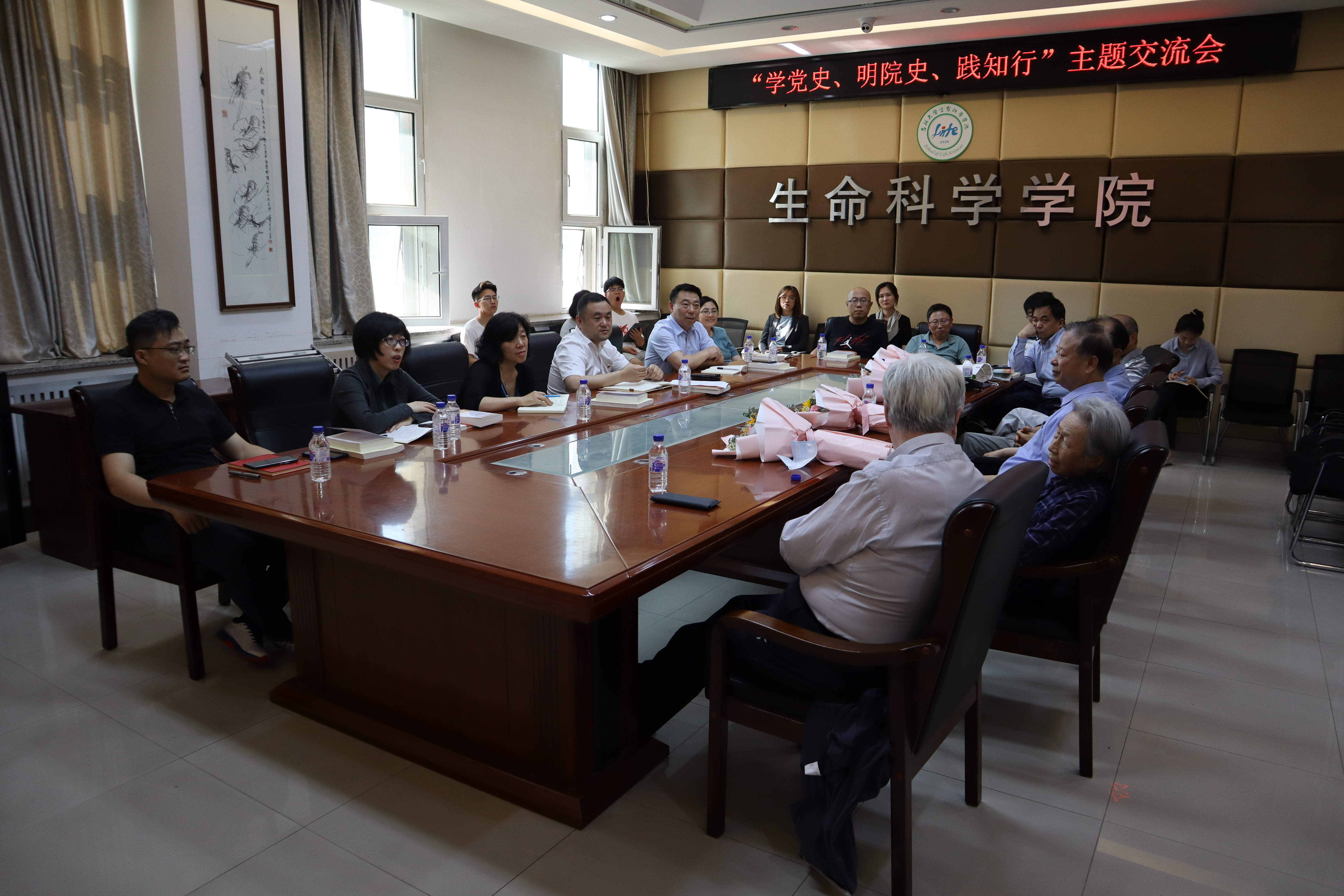 离退休老党员代表、党委理论学习中心组全体成员、学生团员代表参加活动。活动由党委书记白宇主持。