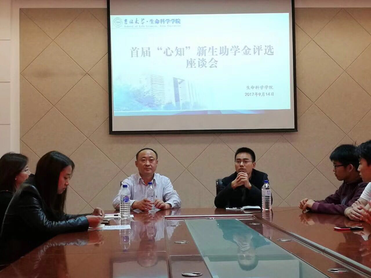 9月14日下午,首期“心知”新生助学金评选座谈会在吉大生命科学楼335会议室举行。