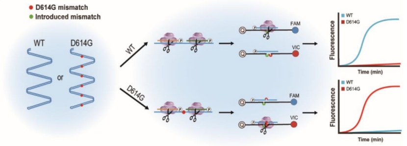 图2. MULAN技术检测新冠及其单碱基突变株的示意图