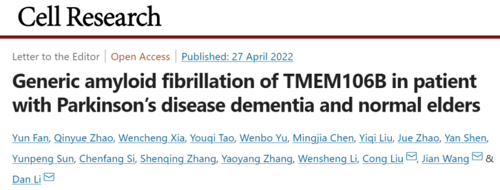 校友、上海有机所交叉中心刘聪课题组与上海交通大学李丹课题组、及复旦大学附属华山医院王坚课题组合作在Cell Research在线发表题为 Generic amyloid fibrillation of TMEM106B in patient with Parkinson's disease dementia and normal elders 的研究成果。在这项研究中,研究人员直接从一位伴有痴呆的帕金森病患者(Parkinson’s disease dementia, PDD)及两位高龄健康对照者的脑组织中提取并发现一种之前未知的全新病理蛋白聚集体,进一步通过冷冻电镜及质谱等方法揭示这种全新的蛋白病理聚集体是由跨膜蛋白106B(transmembrane protein 106B, TMEM106B)折叠成新颖的冰壶状片层结构单元并进一步自组装形成。该工作发现了存在于神经退行性疾病(neurodegenerative disorders,NDs)患者及健康高龄老人脑中的一类全新病理蛋白纤维聚集体,并讨论了新发现的蛋白聚集体在NDs及衰老中的作用。