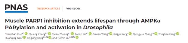 校友、复旦大学刘铁民教授团队在PNAS杂志上合作发表了一篇题为Muscle PARP1 inhibition extends lifespan through AMPKα PARylation and activation in Drosophila的论文,该研究指出在年老果蝇中抑制PARP1,可延长寿命,并发现在骨骼肌中敲低PARP1可通过下调AMPK的多糖ADP-核糖基化修饰、增加AMPKα的活性,后者通过上调PGC-1α和PINK1的表达导致线粒体周转加速,肌肉代谢增加、功能增强,阐释PARP1/AMPK参与精准调控衰老进程的分子机制。