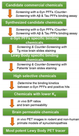 该研究首次发现一种很有前景的新型PET示踪剂——[18F]-F0502B,可在突触核蛋白病中显像聚集神经细胞突触核蛋白α-Syn,该研究已在小鼠模型和灵长类动物模型上得到验证。目前,研究团队正在对新型PET示踪剂[18F]-F0502B展开临床试验,希望可以早日实现临床应用。
