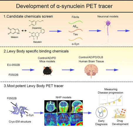 深圳先进技术研究院脑认知与脑疾病研究所叶克强(原埃默里大学终身教授)团队、武汉大学人民医院张振涛教授合作,在 Cell 期刊发表了题为:Development of an a-synuclein positron emission tomography tracer for imaging synucleinopathies 的研究论文。