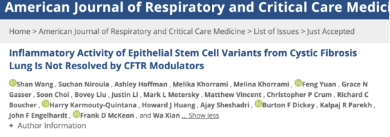 附属口腔医院百人计划研究员王杉等人应用干细胞变异体的单细胞克隆技术,探讨了囊性纤维化患者肺部炎症的潜在来源,试图回答是否存在一种可能有助于患者炎症的干细胞异质性,并测试了CFTR基因治疗或CFTR调节剂药物减轻这种炎症的潜力。该研究以Inflammatory Activity of Epithelial Stem Cell Variants from Cystic Fibrosis Lung Is Not Resolved by CFTR Modulators 为题,发表在American Journal of Respiratory and Critical Care Medicine 杂志。