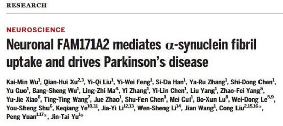 校友刘聪(中科院上海有机化学研究所生物与化学交叉中心)团队与复旦大学附属华山医院郁金泰团队以及复旦大学脑科学转化研究院袁鹏教授团队合作在Science杂志发表题为 “Neuronal FAM171A2 mediates α-synuclein fibril uptake and drives Parkinson’s disease” 的最新研究成果。该研究鉴定出介导神经元摄取PD病理蛋白α-syn淀粉样纤维的神经元膜受体蛋白FAM171A2,并筛选获得具有阻断α-syn淀粉样纤维与受体结合的小分子化合物,本研究提供了全新的治疗PD的潜在靶点,为PD药物研发提供了新的可能。