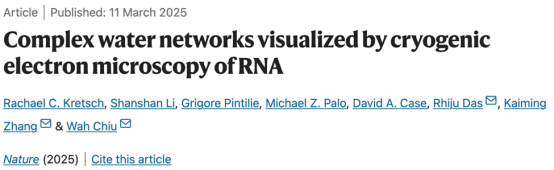 校友张凯铭(中国科学技术大学特任教授)/李珊珊(中国科学技术大学副教授)团队和美国斯坦福大学Wah Chiu/Rhiju Das团队合作在《Nature》杂志上发表了一项突破性研究,成功利用冷冻电镜技术(Cryo-EM)解析了RNA结构中的复杂水网络。这一研究不仅为RNA结构的稳定性和功能提供了新的见解,也标志着RNA结构生物学研究进入新的阶段。